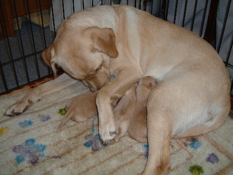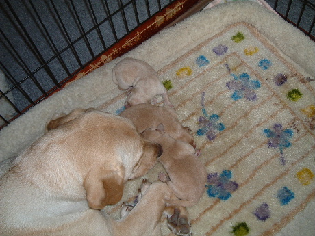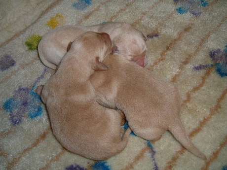 イエローとブラックの掛け合わせだったけど、産まれたのはイエローばかり。まだ、目も開いてないけど、カワイイ。