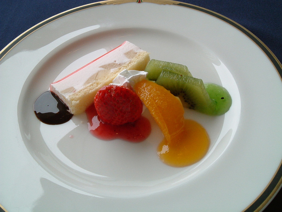 画像は、ホテルのデザート。メインよりこれとコーヒーの方が美味しい気がする。