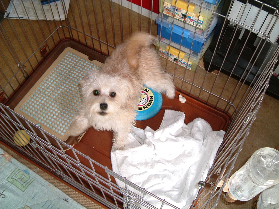 画像は、近所の遠い親戚宅に新規加入したMIX犬の「クリリン」ちゃん♂、ヨーキーとマルチーズの組み合わせらしいけど、わりとデカイ。