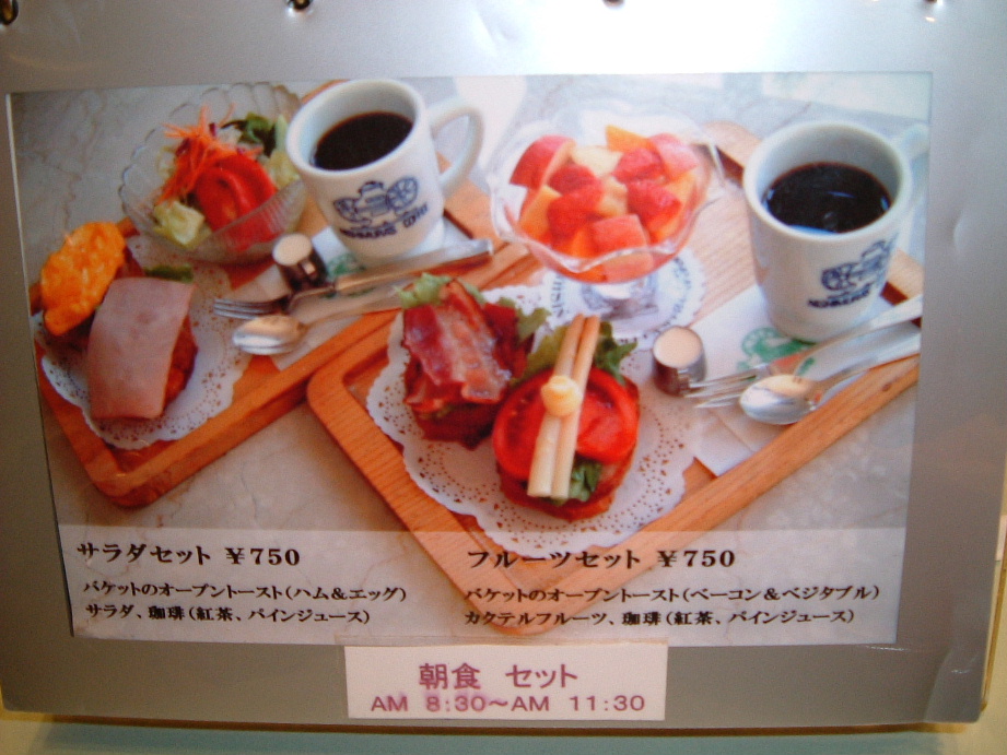 朝食セットのサラダセット(画像参照)を選択。そして、ドリンクは楽しみにしてた「パインジュース」。朝食セットはサラダとフルーツのセットから選択、そしてドリンクはコーヒー、紅茶、パインの中から選択です。