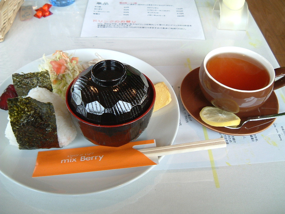 画像は、病院に行く時、採血の関係で朝食抜きで行くので、採血後にモーニングを食べに行った時の和風モーニング。病院の横にある喫茶店。こうしてみると、味噌汁とおにぎりの横に、紅茶があるのはやっぱりアンバランス。