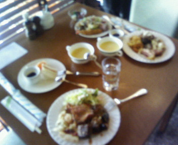 ホテルのランチバイキング(携帯画像なので、汚いけど、画像参照)で、ランチして。ご満喫。